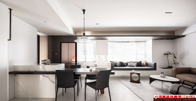 · 在起居室讓獨(dú)立的各處機(jī)能,看似獨(dú)立被分割,卻隱秘的又相互連接交融,從入戶收納機(jī)能逐漸蔓延至內(nèi)。